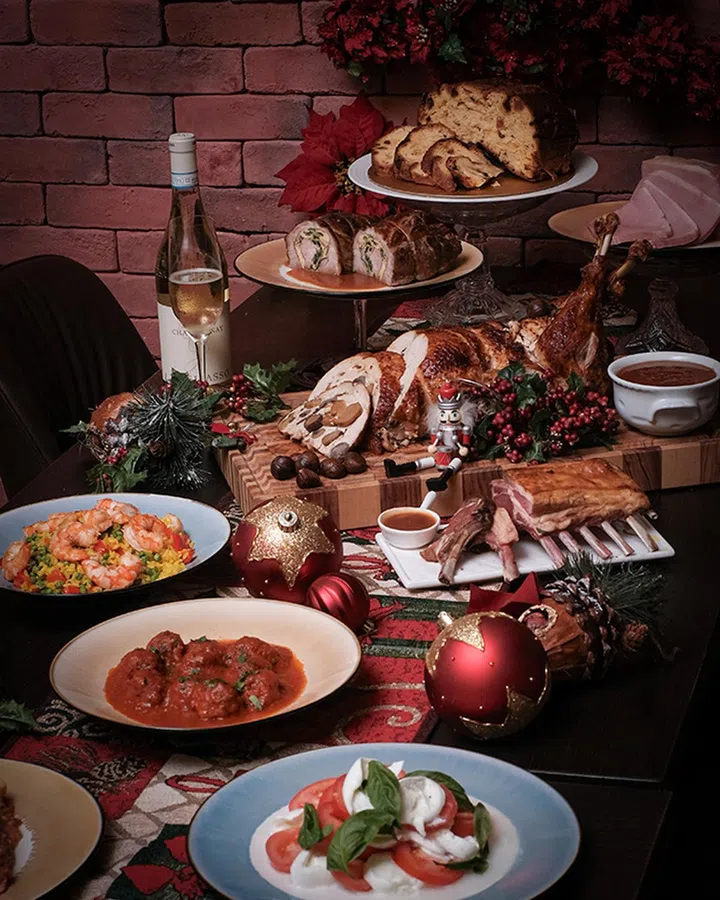 Da Paolo Gastronomia 是新加坡知名的意大利餐厅,提供正宗的意大利风味。今年圣诞季,餐厅为家庭聚会和朋友聚餐精心打造了节日菜单。无论是填馅无骨烤火鸡($388)、黑松露鹅肝牛膝派($218)还是烟熏三文鱼慕斯($168),每一道佳肴都散发着浓浓的节日气息。此外,餐厅还推出了适合6至12人分享的圣诞烤肉套餐,带给你和亲朋满满的温馨和喜悦。