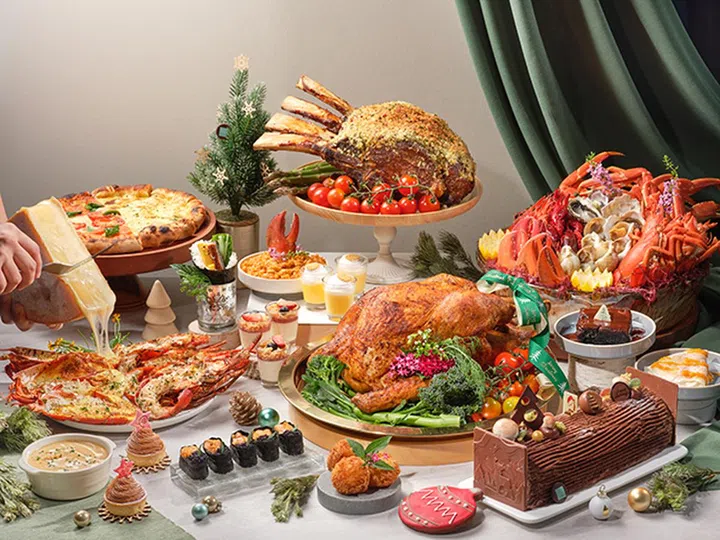 Alley on 25 圣诞期间推出丰盛自助餐,为节日聚会增添温馨与美味。菜单包括新鲜沙拉、冷盘、海鲜拼盘、手工奶酪和椰香虾鸡尾酒等开胃选择。热菜区提供松露菠菜芝士通心粉、藏红花烩饭和牛肝菌奶油蘑菇汤等经典佳肴,还有整只慢烤黄油火鸡、枫糖釉猪火腿及多款节庆风味配菜,如香醋烤抱子甘蓝、枫糖胡萝卜和奶油红薯泥。甜点区则准备了圣诞树桩蛋糕和白兰地火焰圣诞布丁,为用餐画上甜美句号。