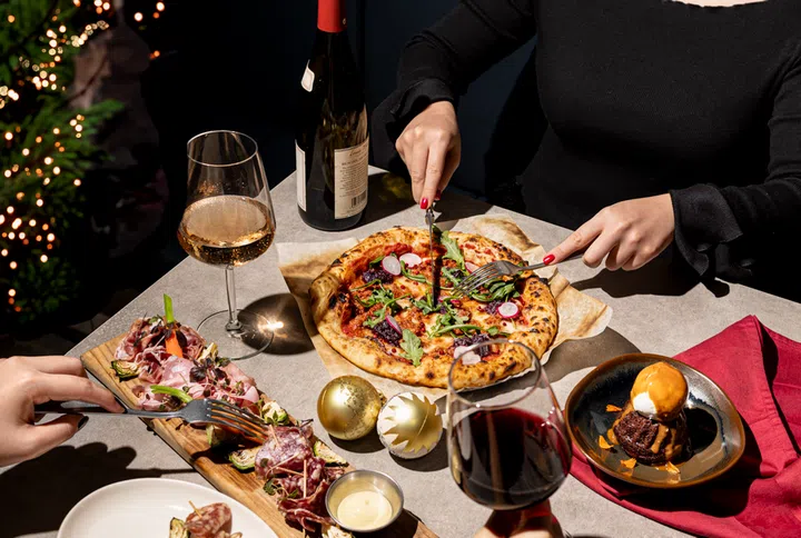 想为圣诞增添节日气氛?Paradise Pizza 的圣诞特别菜单绝对不能错过!推荐 Merry Munchies Set,从 Noel's Nibble Plate 开始,包含风干火腿、萨拉米香肠、意大利煮肉肠、新鲜蔬菜棒和松露蛋黄酱。主菜是节日风味十足的 Barese Turkey Pizza,采用慢煮火鸡肉酱、蔓越莓和罗马佩克立诺奶酪,浓郁又特别。甜点则是经典的 Sticky Date Pudding,堂食时搭配香草冰淇淋,外送或自取则配香缇奶油。不管是外带还是堂食,这份节日菜单都让圣诞更有味道!