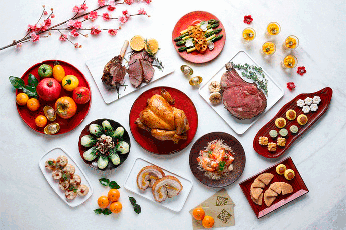 迎新春最佳方式,当然是与至亲品赏丰盛海鲜肉类盛宴,也就是盆菜。层层叠叠的三层美食精髓,用料包括原粒鲍鱼、海参、干贝、鲜虾和烧鸭等食材。想尝试新鲜菜色?新推出的Auspicious Golden Pot汇聚了鹿筋、鹅掌、羊肚菌、排骨、鱼鳔、天津包菜、栗子和发菜等一锅顶级精华料理(4人份价格$208/6人份价格$308)。用餐人数多的话,你也可以选择7或8道菜式的套餐,菜色有原只无骨烤乳猪、清蒸笋壳鱼、红烧原只鲍鱼、蚝干炒时蔬。4人套餐价格$398++,10人价格$1,688++,1月21日至2月19日。