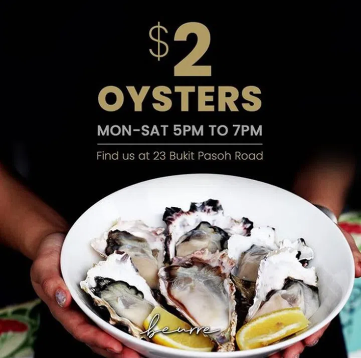 来到Bukit Pasoh一带,推荐你到Beurre享用美味生蚝。Beurre主打融入亚洲风味的现代欧式料理,每日(除了星期日)从5pm到7pm期间 ,只需$2就可以吃到鲜味多汁的生蚝。