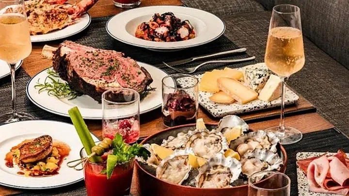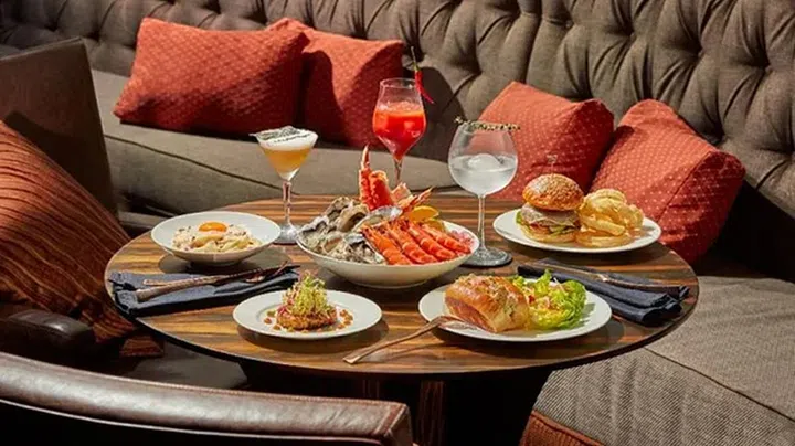 餐点涵盖一系列豪华菜式,包括黑松露威灵顿牛肉和缅因大龙虾;爱吃海鲜的人也可以享用到鲜美多汁的海鲜大餐,包括老虎虾、雪蟹、扇贝,以及三款任吃的新鲜去壳生蚝(Canadian、Irish和Fine de Claire)。