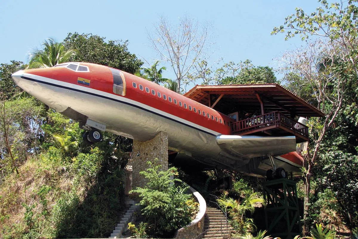 远在中美洲Costa Rica的Manuel Antonio National Park国家公园中的Hotel Costa Verde旅馆,就由一架1965年制造的波音727客机改装而成。这架曾执飞南非航线的“退役”飞机,经分拆后动用了五辆大卡车才由San Jose机场一部分一部分搬往所在地。 酒店建于距离沙滩50米高的斜坡上,能够眺望太平洋的海景。里边共有两间卧室,地面和家具都选用柚木为材料,让旅馆“融入” 大自然中。但这家飞机旅馆的收费不便宜, 一星期住宿要价英镑2,100,等同于入住伦敦五星级酒店The Ritz。