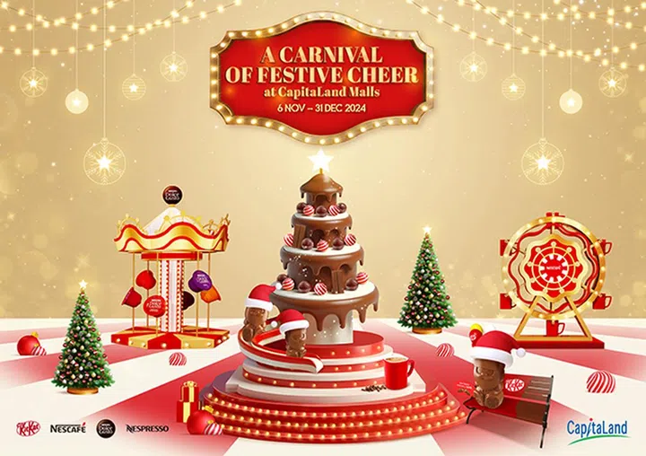CapitaLand购物中心推出了亚洲首个巧克力与咖啡主题圣诞嘉年华,邀请你与家人一起感受节日的欢乐氛围。17家购物中心装点着璀璨夺目的圣诞装饰,庆祝KITKAT®与Nestlé三款经典咖啡的完美搭配。你不仅可以与美丽的圣诞装置合影,还能参与NESCAFÉ和KITKAT主题的小游戏,赢取丰厚奖品。此外,还有互动工作坊和节日特调饮品等待品尝,拍照记录节庆时刻,分享到社交媒体,还有机会赢取$50 eCapitaVoucher,尽享这个季节的美味与欢乐!