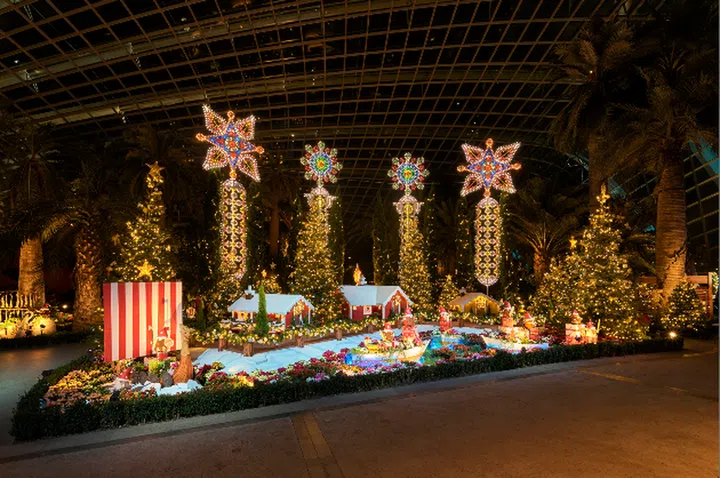 Gardens by the Bay在今年可是准备了一系列的圣诞装置和活动噢~ 像是Flower Dome早早就换上了节日主题,特别展出了带有平安夜之意的Poinsettia花朵。除了各种绚丽的灯饰,展区内还有20多棵树翠绿的圣诞树,让你能看到、嗅到、感觉到,全方面地沉浸在节日气息!