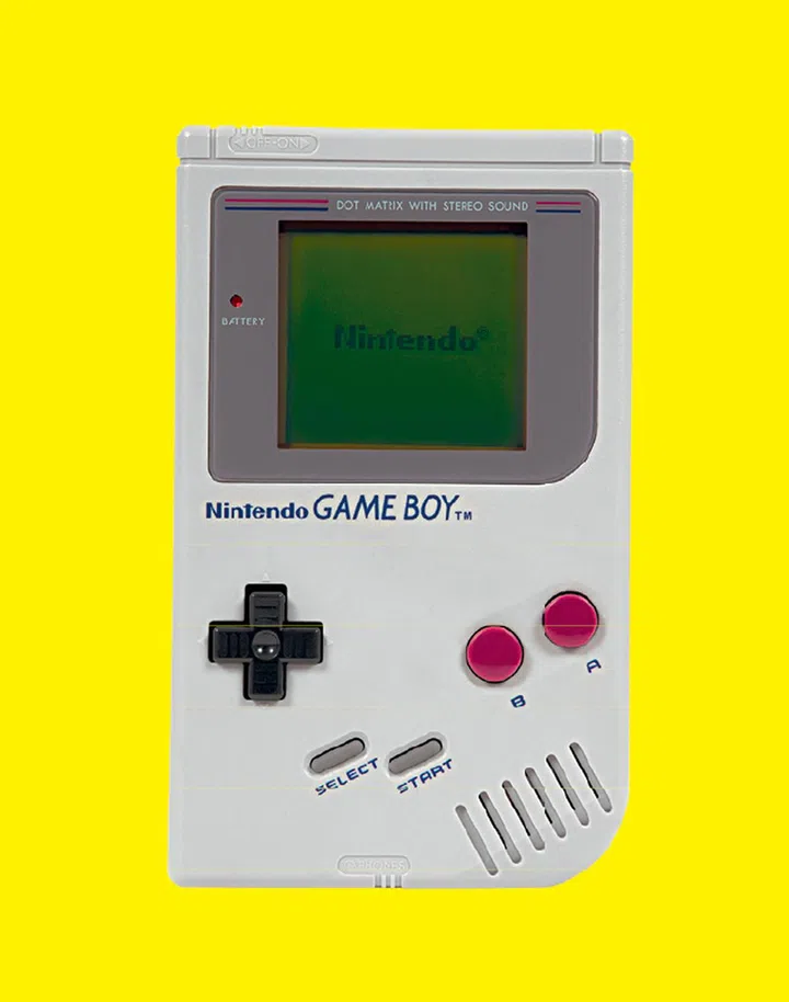 日本电玩公司Nintendo在1989年推出第一代便携式掌上游戏机,由公司当时重要人员横井军平主导开发。Game Boy的体积与当时的行动电话相似, 在设计上有四个按键:“A”、“B”、“select”和“start”,及十字形方向键,玩家将游戏卡插入即可开始游戏。首发游戏共四款:《超级马里奥大陆》、《打砖块》、《棒球》及麻将。 Game Boy被誉为史上最成功的掌上游戏机之一,更奠定了Nintendo的电玩帝国,缔造无数破纪录的惊人销量。