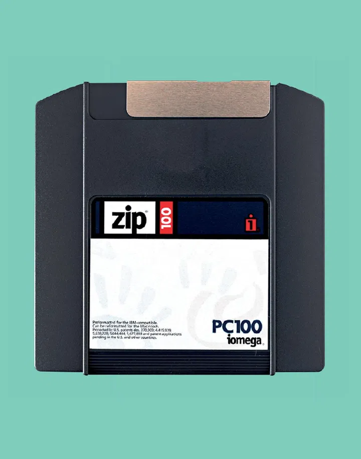 美国公司Iomega在1994年末发明了Zip Drive和Zip——前者为高容量软式磁碟机,后者为高容量软碟片,用于个人电脑储存中至大量(当时)数据的装置,而且与PC和Mac兼容。早期的Zip容量仅有50MB,后来升量至100MB并开始被广泛运用,最高容量甚至高达750MB。后来,随着CD-R价格下降及外接硬碟的普及,Zip磁碟片因其多部件操作方式而日渐没落。