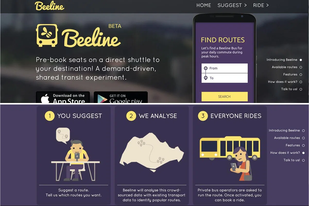 这也是两个管理局首次推出这类型的服务,希望通过Beeline手机应用程序来满足不断变化的乘客需求。Beeline 网站经过调查后取得乘客们推荐的路线,以此提供服务方便乘客抵达全岛东、南、西、北的地点。目前最主要的是推出周日上班高峰期时,直接抵达中央商务区 (CBD)的专车路线。新路线不断陆续增加中。