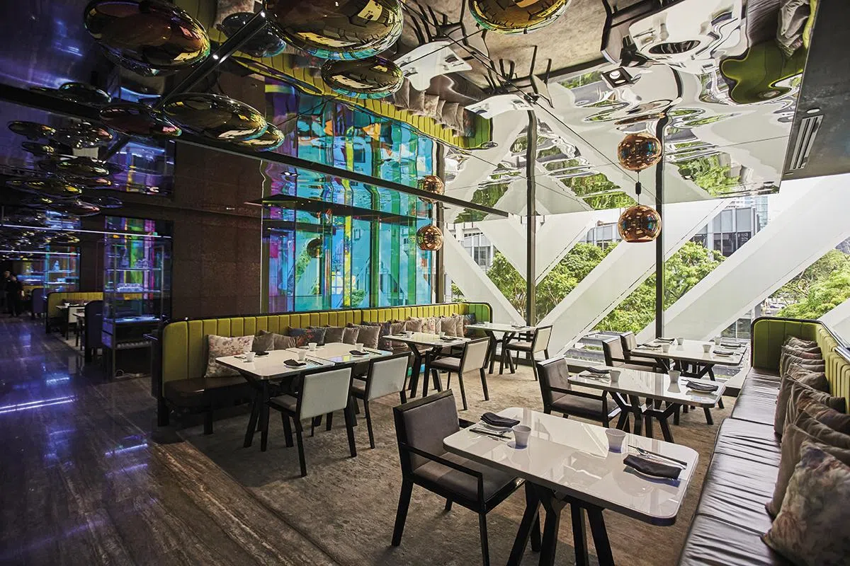 玩转传统粤式餐馆的概念,以色彩斑斓的玻璃反光片照射餐馆,让环境更时尚、轻松。同时提供轻松用餐环境和长沙发,企图营造慵懒的用餐氛围。对鸡尾酒讲究,甚至在粤菜餐馆里也设有吧台方便食客品酒。食客还可以到吧台和调酒师交谈,了解众鸡尾酒的特质。