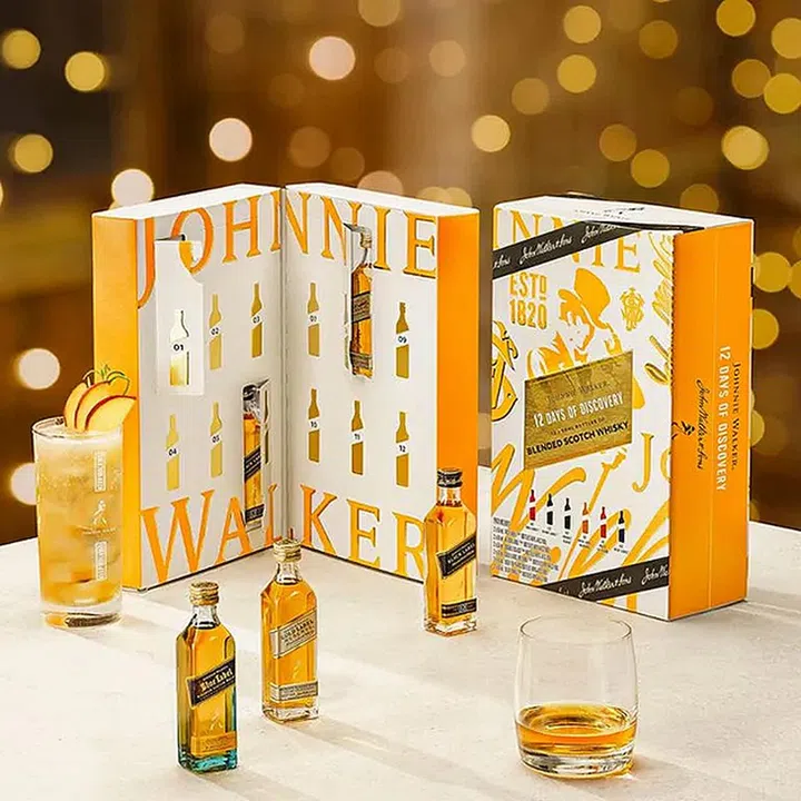 Johnnie Walker的12日套装礼盒,内有12款经典的苏格兰威士忌酒,如Black Label 和 18 Years,无论送礼或自用都相当不错,让酒迷在微醺滋味中迎接美好圣诞。