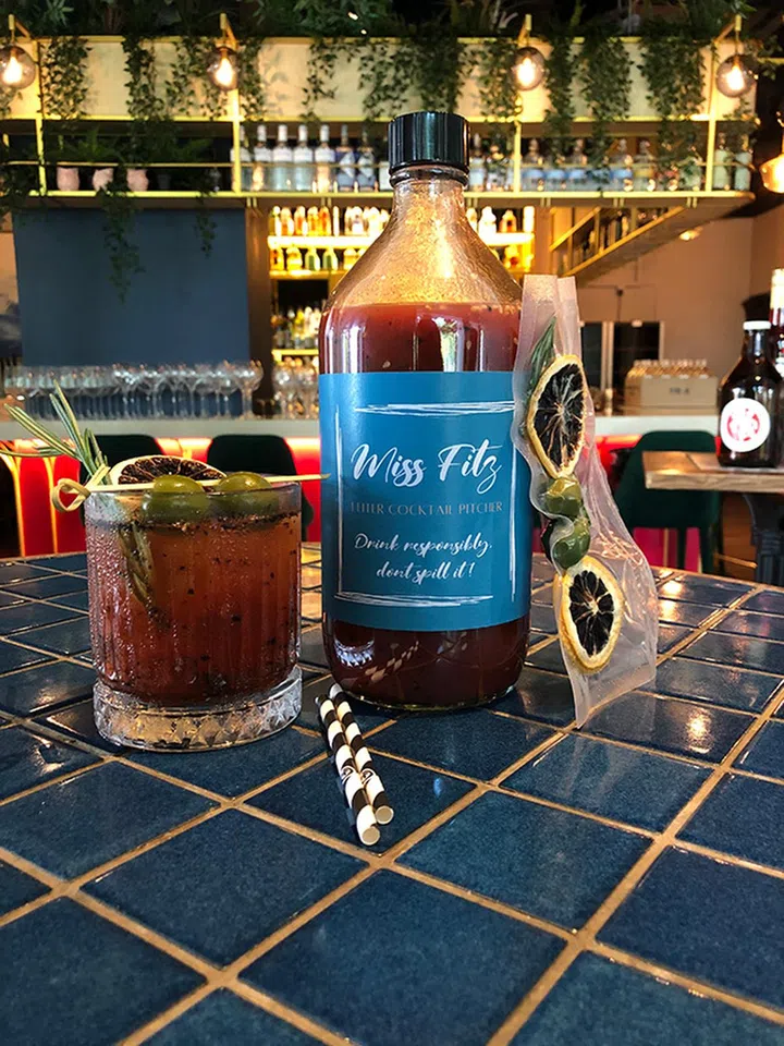 Miss Fitz餐厅推出一系列外送餐单及独特酒款,每周呈献Taco Tuesday、Wednesday Ladies Night、Saturday Boozy Brunch,及Stay Home Sunday Series四类配套,美食、美酒、美味甜点,应有尽有。上图为Bloody Mary鸡尾酒,1L装价格$70+,两瓶起售。
