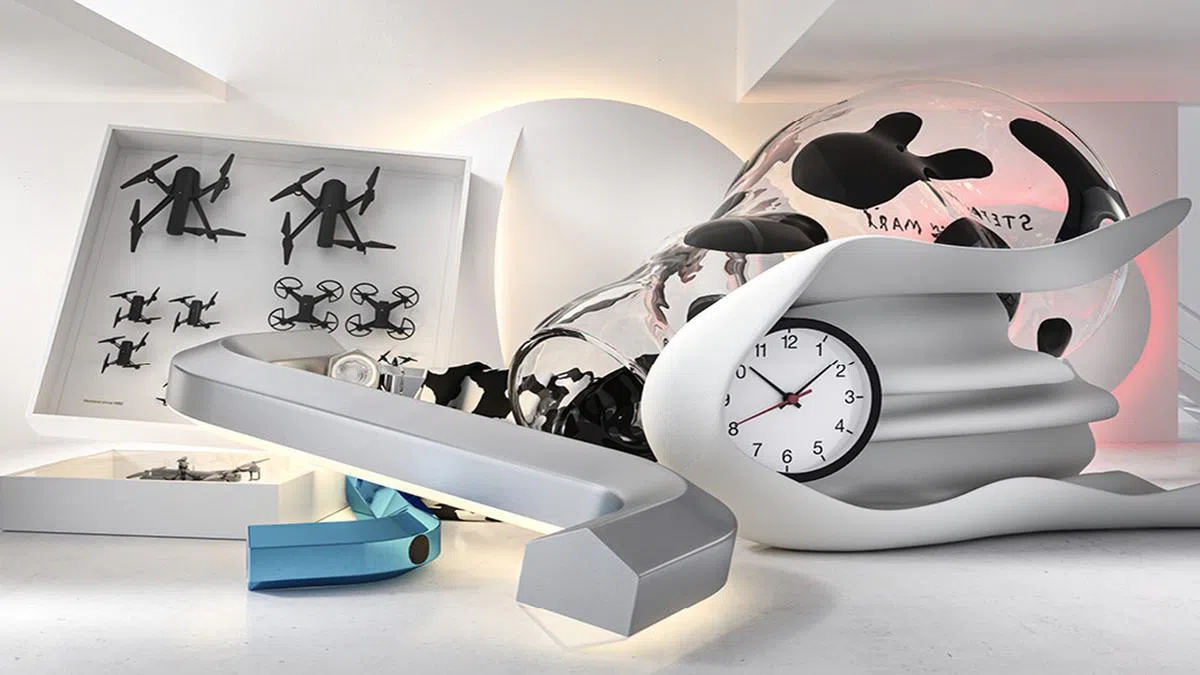 来自美国纽约的Daniel Arsham是著名多元艺术家,在舞台、时尚、室内设计等不同领域都常跨界合作。这次为IKEA设计的时钟以他2011年作品《Falling Clock》为原型,仿佛时间被魔毯包裹漂移在空中,带有超现实主义味道。