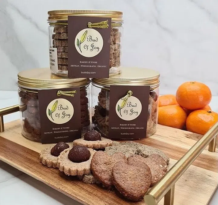不含反式脂肪酸,不含防腐剂,不含精制糖,不含人工香料和色素,非转基因产品都是Bud of Joy的标签。相对“不健康”且“高卡路里”的农历新年小吃,在这里是不存在的。Bud of Joy提供由新鲜有机黄莉所制成的菠萝塔、用有机生可可制成的巧克力饼干都是新年小聚的的好选择,也可以当做伴手礼送给“health-conscious”的朋友!