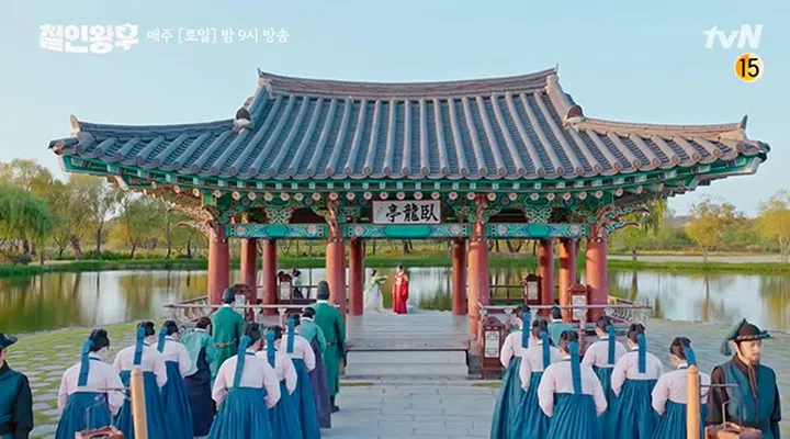 让张奉焕魂穿到皇后身上的“春塘池”,本该在首尔的昌庆宫中,但《哲仁皇后》剧里的拍摄地却在位于忠清南道的古镇—— 扶余郡。这座池塘原名为“宫南池”,是韩国历史上最早的人工莲花池。只可惜,莲花池在1960年代经过复原工程重建,规模仅剩原本的三分之一,若到现场参观,可试图想象它在当年的庞大与辉煌。