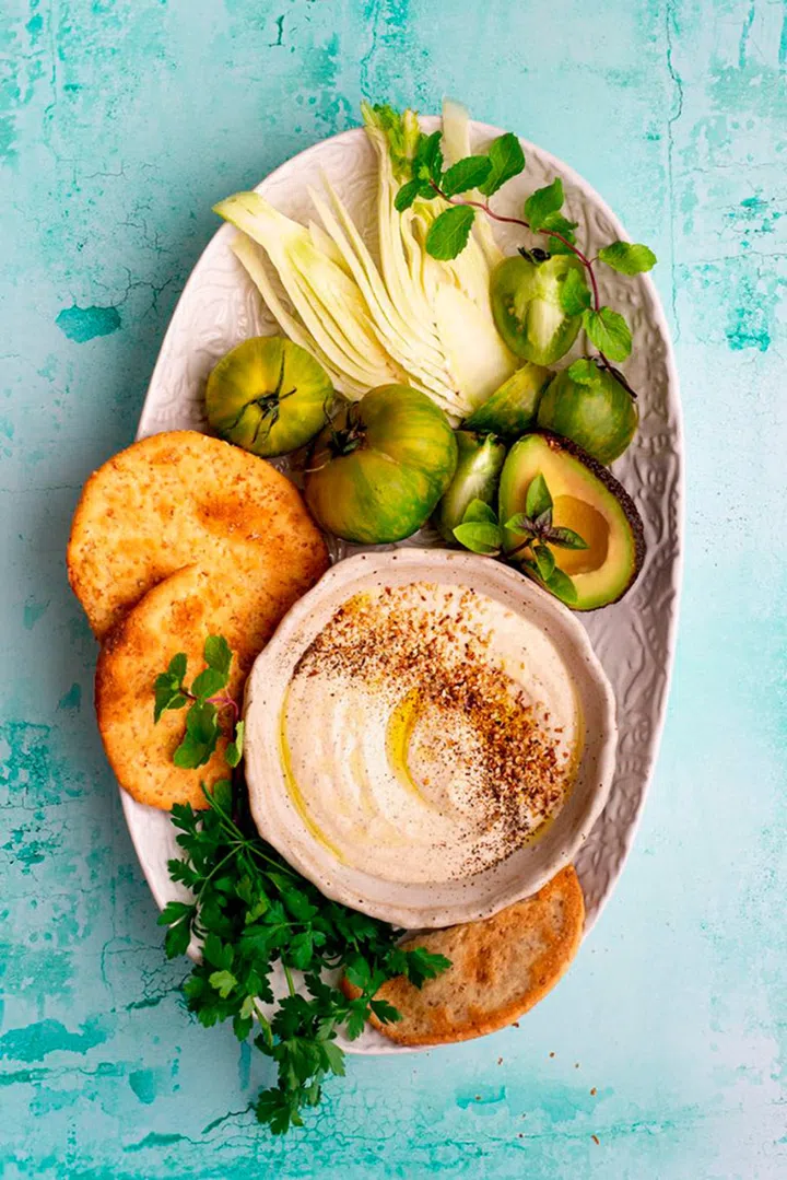 随着无肉饮食风潮的崛起,也可以考虑融入植物性食材,美食造型师Elodie Bellegarde建议大家可以根据客人的饮食限制,加入一些低卡健康食物选择,比如用坚果制作的蘸酱、甜菜根和鹰嘴豆制作的豆泥或腌制洋蓟等,为拼盘带来有趣的口味变化。