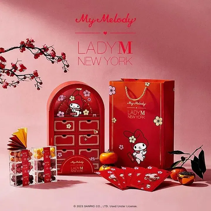 Lady M联名Sanrio家族的萌兔My Melody推出新年糖果礼盒($120)。红彤彤的“橱柜”包装别具新意,共有6个小抽屉,每一层都装满不同的糖果,包括脆皮可可饼干、李子软糖可可球、荔枝软糖可可球、柑橘软糖可可球、抹茶白巧克力球及覆盆子软糖。礼盒也附带漂亮的限量版红包封,让你在过年期间,为亲友送上窝心甜蜜的祝福。
