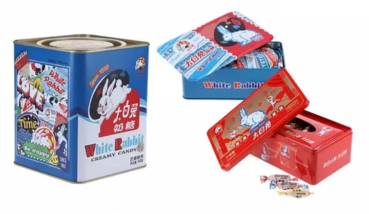 大家的童年回忆:大白兔奶糖!为欢庆兔年到来,品牌推出了三款限定版饼干和糖果,有欢庆大白兔奶糖60周年纪念的铁罐包装、向品牌80年代经典设计致敬的古早味包装,两款包装内都是招牌的大白兔奶糖;另外也推出了5种新口味的奶糖(红豆、咖啡、酸奶、芥末和话梅),以春节主题包装设计的铁罐,吃完后还可以再利用当纸巾盒使用哦。