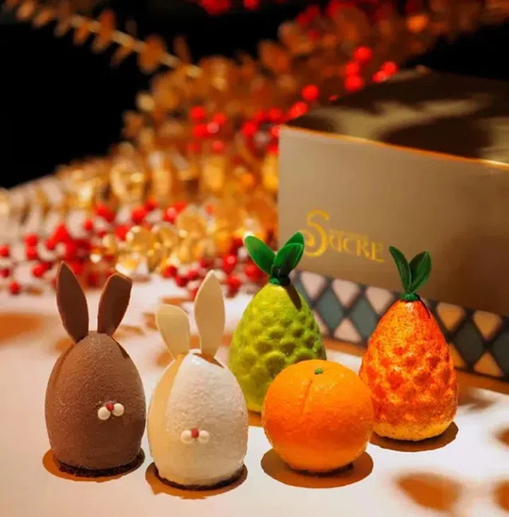 甜品屋Mad About Sucre推出春节限定的蛋糕礼盒($70),共有5款漂亮的无麸质蛋糕,其中两款兔子造型的蛋糕让人冒出粉红心心眼,你也可以选择购买单片蛋糕($14起),选择有枫糖香橙蛋糕,还有大人系酒味蛋糕,包括加入日本清酒的桂花哈密瓜蛋糕,或添加朗姆酒的香橙栗子蛋糕。