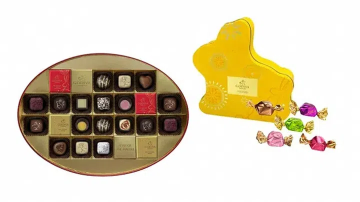 比利时巧克力品牌Godiva以兔年为灵感,推出新春限量的巧克力礼盒系列。金色兔子造型的铁盒内装招牌的G Cube松露巧克力,不同口味有牛奶、黑巧、草莓黑巧、抹茶牛奶巧克力和榛子牛奶巧克力。品牌也推出4款巧克力新口味,包括杏仁甘纳许黑巧克力、百香果椰米布丁、开心果牛奶巧克力和草莓甘纳许白巧克力(每个$4.50),巧克力表面还装点了寓意吉祥如意的兔子图案。也可以选择购买礼盒包装(每个9个$63起)。