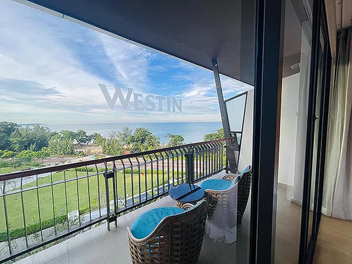 The Westin Desaru Coast Resort房间内的海景阳台(《女友》实拍)