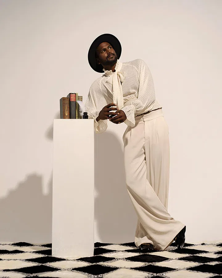 我和本地创意艺术工作室framethefolks三位联合创办人一起进行拍摄。I-zakRugdee摄影,Evan Tan是灯光指导,Bobby Low协助灯光并负责场景。我们早在Temasek Polytechnic念书时就已相识,当时我还在探索个人视觉风格,常找 他们合作。另外还有好友Joanne Ang为视频掌镜, 记录幕后花絮。Rin Low作为造型师,和我一起置装及造型。最后为让六位参与者都能自信出镜,当然还有发型兼化妆师Priscelia Wong的功劳。 我很高兴他们接受我的项目提议,也感激LASALLE College of the Arts艺术学院BA(Hons) Fashion Media and Industries教育团队数月来给予我的指导和建议。
