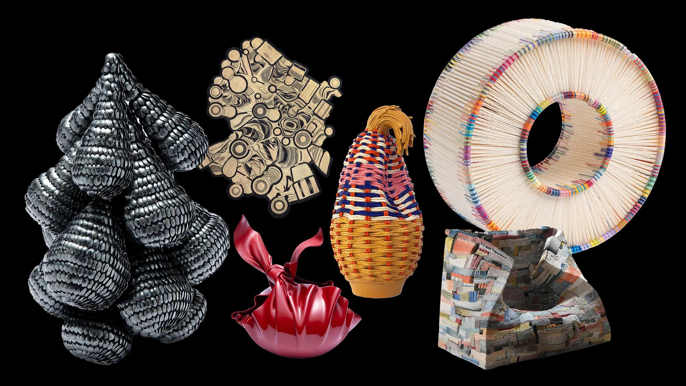 在本届入围名单中,有多达12位亚洲艺术家名列其中。其中,新加坡艺术家Adelene Koh的作品《Endless》以书籍装订中隐匿于书脊的封头带为起点,将其转化为一个循环延展的立体结构。中国艺术家隗楠则以漆艺探索材料的极限:作品《Knot-Loving》将生漆层层渗入皮革内部,使结构由内而外固化,再经反复打磨形成高度光泽。而韩国艺术家Jieun Park以作品《Seed of Circulation》将上千个银质单元串联起来,形成一个可扩张又自我支撑的整体。