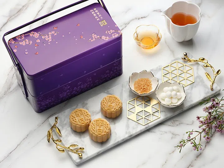 Classic Baked Mooncakes礼盒以柔和的米白和粉嫩配色,搭配精致花卉及蝴蝶设计,优雅美观。开合设计让礼盒更具仪式感,共4块传统口味月饼独立包装,方便分送或食用,大方又实际。口味包括双黄夏果白莲蓉月、松子夏果白莲蓉月饼、单黄珍珠白莲蓉月饼,皆是经典美味,可大大降低踩雷的风险。