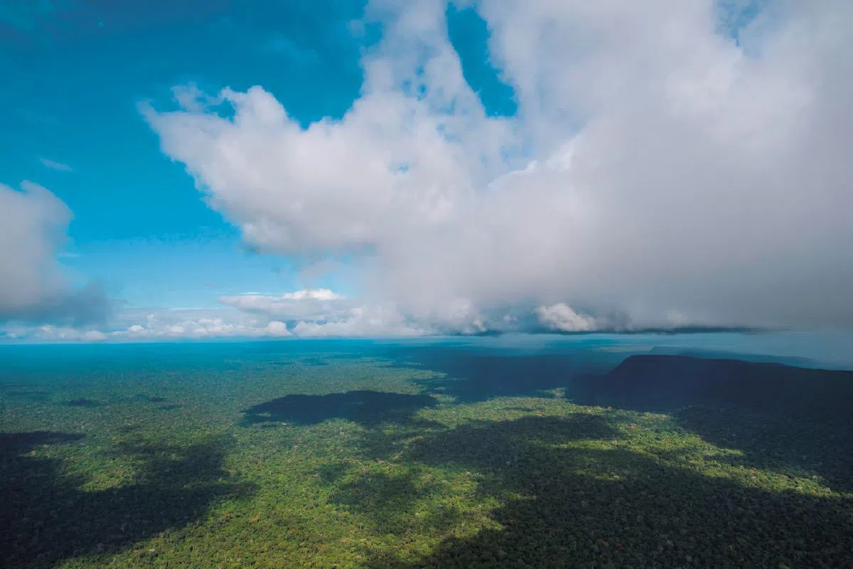 雨林中,是世界最大受保护热带雨林, 公园一大特色,是有许多俯瞰森林的陡峭砂岩高原tepuis(印第安 语 ,意为桌面山脉)。入选原因之一是tepuis基座周围的60个岩棚石壁上,有超过7.5万幅岩画,时间跨度从战斗、舞蹈和仪式场景,相信与美洲豹崇拜有关。对原住民来说,美洲豹可是力量和生育力的象征。