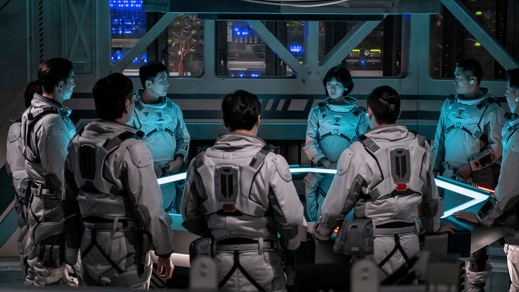一群演员在戏中得穿上沉重的太空衣在月球步行。裴斗娜爆料没包括头盔,太空衣已重达8.5公斤,“我戴上头盔后,呼吸很不顺畅,感到有点窒息,需要时间适应。”