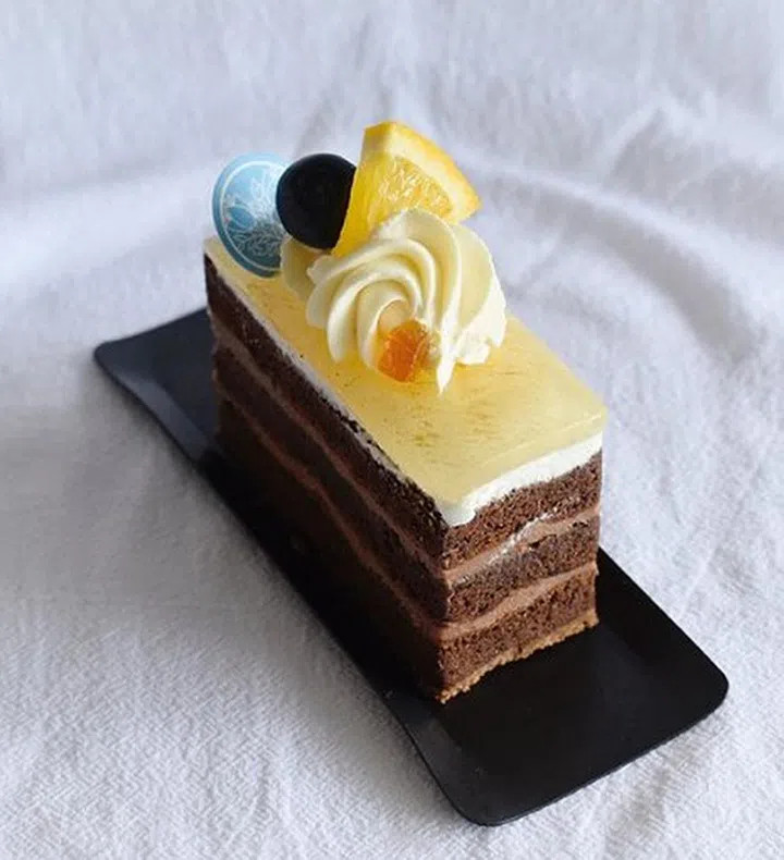 Flor Pâtisserie融合法式和日式甜点风格,以精致美味的蛋糕著称。这款Yuzu Chocolate Brick蛋糕,在带苦甜味的巧克力海绵蛋糕铺上一层丝滑的柚子奶油、果冻,并以新鲜水果点缀,完美融合了柚子和巧克力的酸甜滋味。