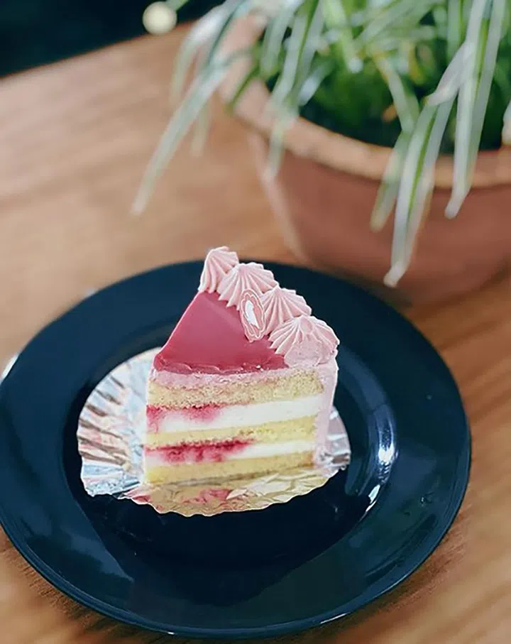 浪漫的粉红色蛋糕,颜色独特,有没有瞬间被激发少女心的感觉?Nesuto漂亮的柚子覆盆子蛋糕,有多种大小尺寸可选,采用轻盈的日式香草舒芙蕾蛋糕制作,内层铺上柚子慕斯和新鲜的覆盆子酱,再涂上红宝石色的Ganache。可到位于Tanjong Pagar的分店购买单片蛋糕。