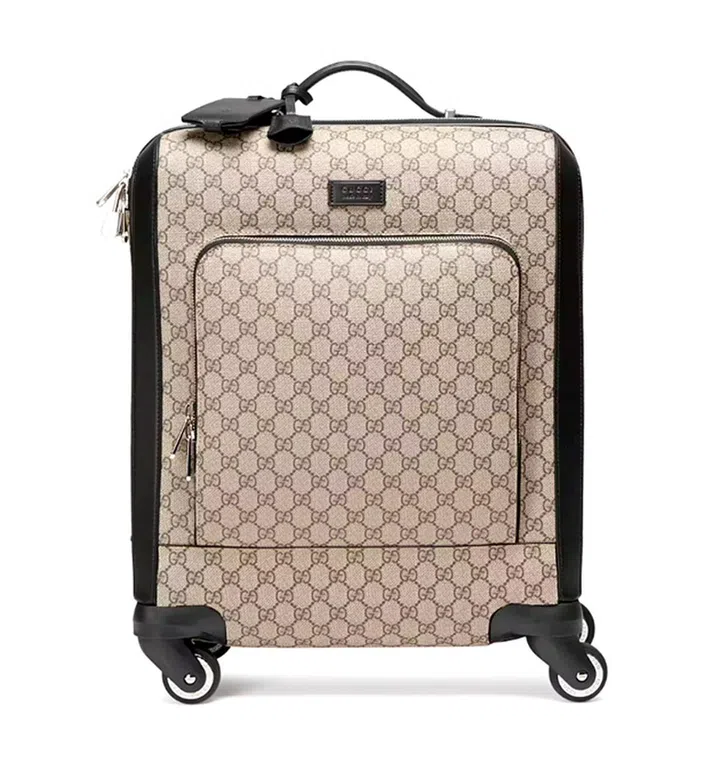 继早前推出英女王都在用的Globe-Trotter行李箱后,品牌推出小型,但具強烈个性风格的GG Supreme随身行李箱。外部采用高级防水GG Supreme帆布材质搭配黑色皮革镶边,印有Gucci标志性的GG Supreme图案,经典且不会过时。