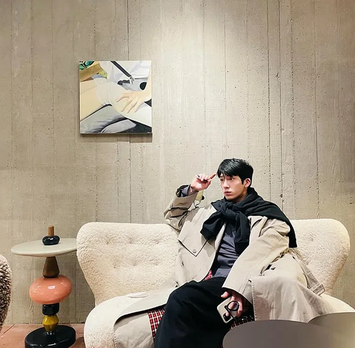 井柏然的家曾被称为“博物馆”,每个角落都能拍出大片。他好像真的蛮喜欢&Tradition这个牌子,除了沙发,他还晒过同品牌的Little Petra单人沙发和茶几。图中的这款沙发灵感源于Viggo Boesen20世纪的作品,采用全手工打造的胡桃木椅架和沙发面,廓形特别又能将你“包裹”其中。