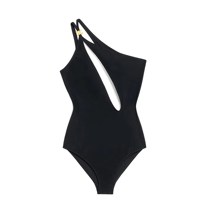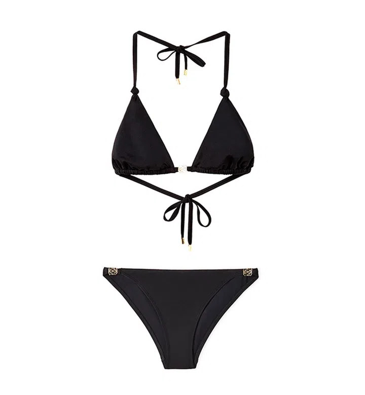 Anagram硬饰细节的简约黑色比基尼,来自品牌散发浓郁度假气息的年度Paula Ibiza系列(与富传奇色彩的精品店Paula's Ibiza合作,每年夏季推出),穿起来性感又性感。