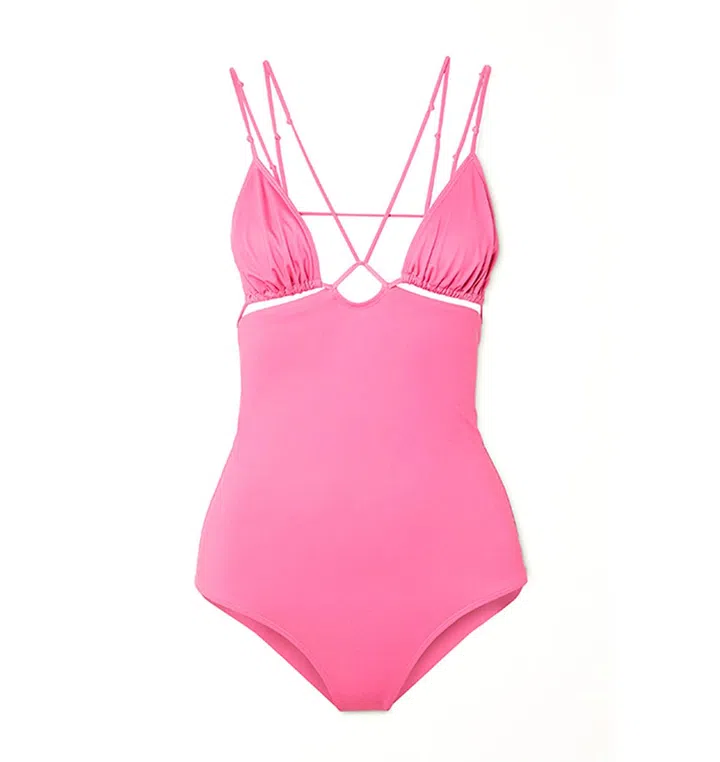 Net-A-Porter携手Jacquemus推出的独家系列,共包括23款单品,风格清新且具年轻态度。其中也包括粉色一件式泳衣及水绿色比基尼。