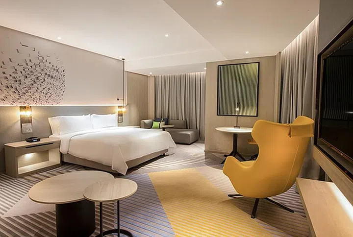 对于喜欢打卡拍照的女友们定要来这间酒店住一住!它的室内装修设计感十足,就连厕所也不放过——布局干净舒服,设计都是以大理石为主,搭配一面超大的落地玻璃窗,嗯,是拍照的好地方。另外,酒店里的设施齐全,游泳池和健身房都设立在风景超赞的30多层,停车也是免费的哦!