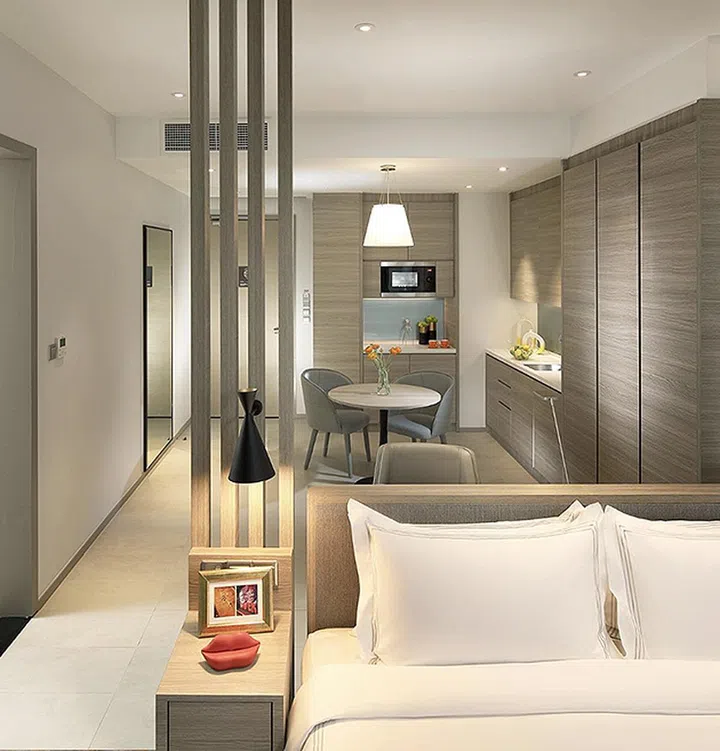 这间酒店在JB有不少间分店,可想而知它受欢迎的程度。稳稳的网红风格,酒店大堂内也摆放了不少小玩意和钢琴,每个角落也都还有贴心的小惊喜,如小饼干、咖啡、茶,还有供客人们娱乐的卡牌。房间整体简约干净,设有独立厕所。