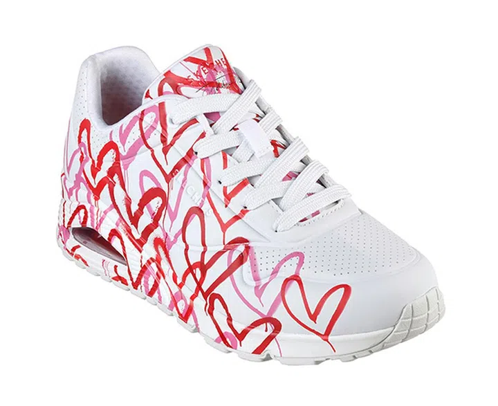 Skechers与国际知名壁画家James Goldcrown携手推出情人节系列球鞋。James Goldcrown 将他标志性的#Lovewall心形设计饰以Skechers Uno系列球鞋,以爱心诠释寓意着浪漫爱情及自爱的爱心们,让你走到哪儿都有着满满的爱心陪伴。