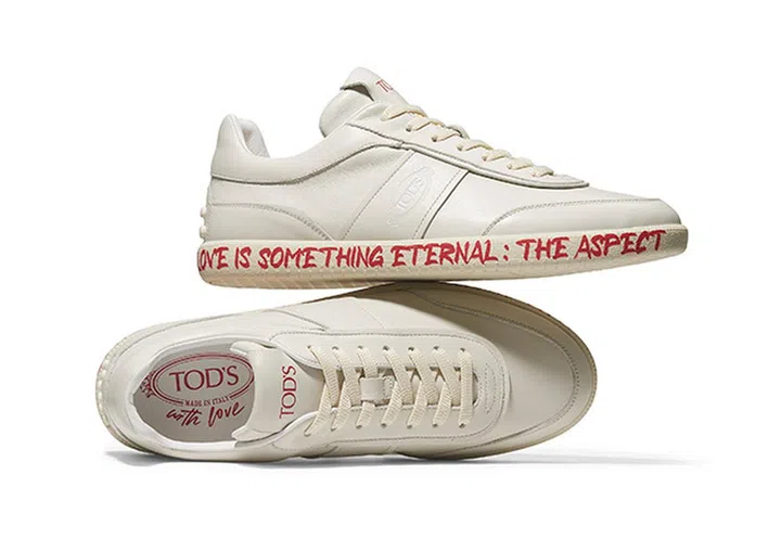Tod‘s为情人节推出特别胶囊系列,其中还将品牌的Tab sneakers进行甜蜜改造,在鞋底边沿装饰涂鸦文字,鞋后跟还带有超大“爱心”图案。