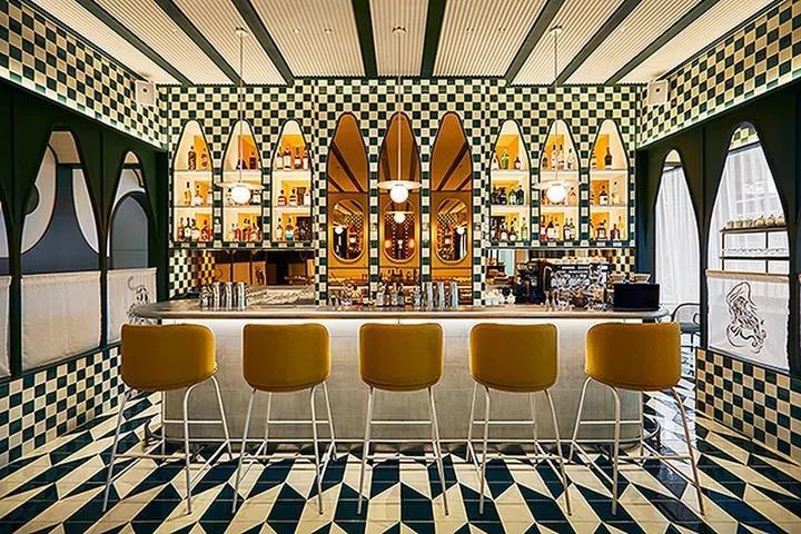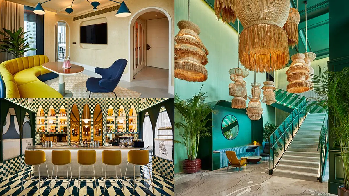 先说颜色——酒店到处(包括客房)是各款浓郁但不过分夺目的色彩如宝石绿、土灰玫瑰红、基本黄、深蓝及dusty粉红等,很1960/70年代美式风情却又契合当下流行。另说设计线条及家具选择——几何纹样在各处体现了只此一家的设计美学,从圆角 座椅及玻璃衣柜、立体线条墙饰到格纹砖墙,视觉质感之丰富让人目不暇给。最后说遍布酒店的艺术摆设——看似没主题的多样化却“凑合”成和谐感,展现设计巧思和功力。