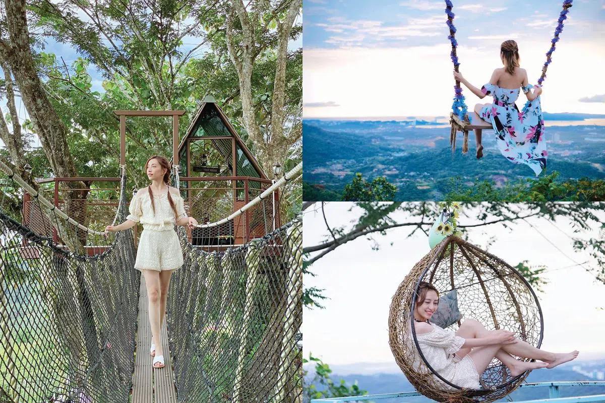 只要动作够抢眼,即便只是穿着白T配牛仔裤(看本地明星“拼”白T恤造型),也能让你霸气有型(素颜的话可配上墨镜,效果更佳)。陈敏之就钟爱拍摄远景照,要嘛站在最高端,要嘛动作大而显眼,总之在将景色都包揽到镜头里的情况下,也让她毫不逊色。