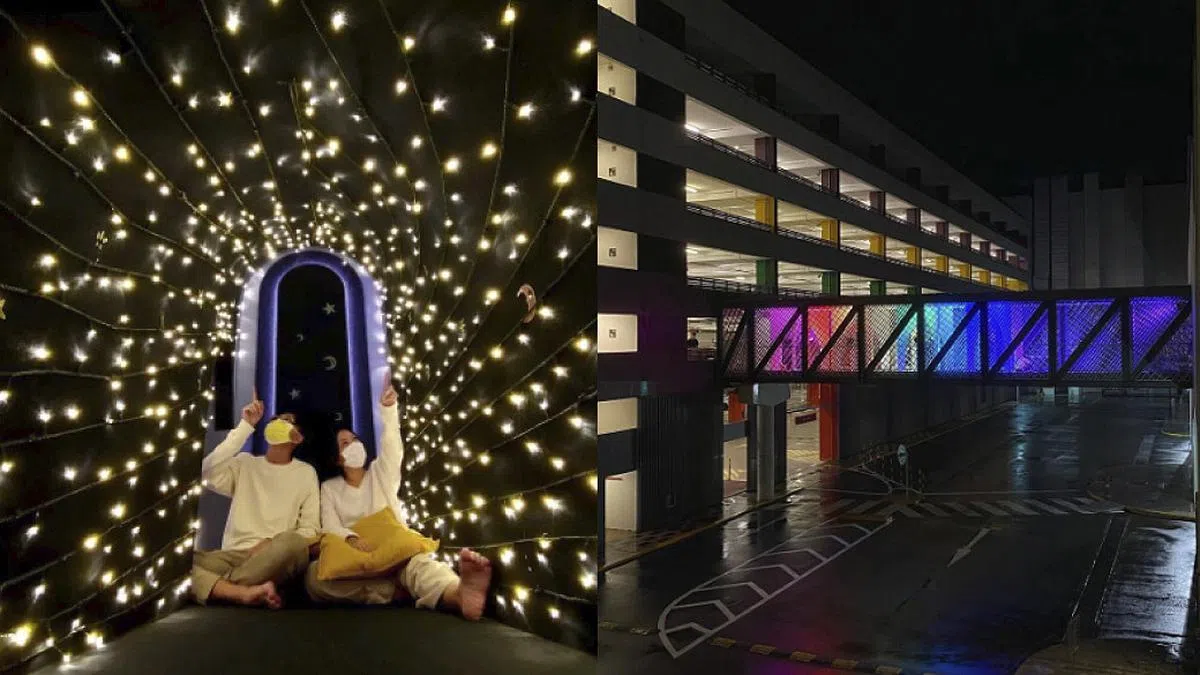位于Downtown East的幻彩装置,将截至3月21日。白天观看是以柔和色调打造而成的隧道,到了夜晚会散发出霓虹光芒,各具特色。该装置其实是链接两栋建筑物的桥梁,从外部也可明显看到鲜明的七彩灯饰哦!