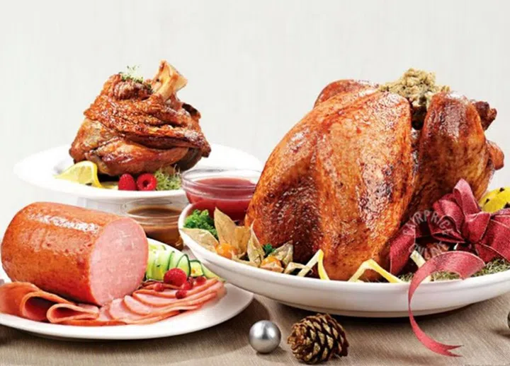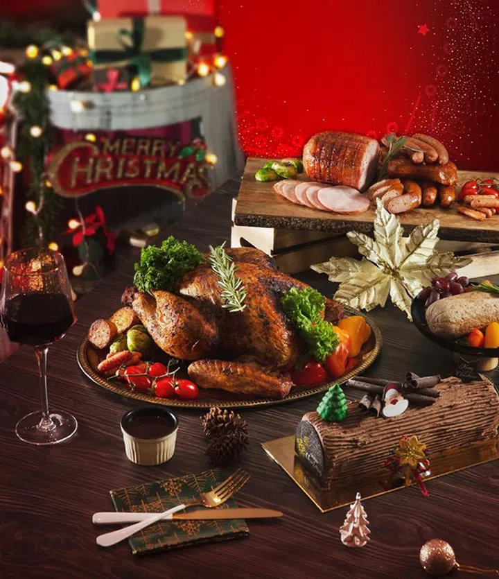 预算有限则可到Fairprice进行扫购,其经典套餐就包括火鸡、蜜汁火腿、德国烧猪等,价格只需$82。此外,还有Free-Range Sausage Platter($33.90)及Meatless Grandeur($98.90)供素食者选择。