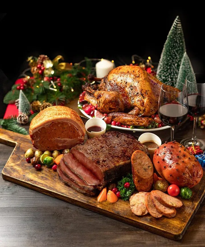 Swiss Butchery的圣诞套餐从$58起,含烧鸡、火腿、辣味猪肉肠等。想要大餐更丰盛,推荐选择Christmas Feast bundle ($450),含澳洲草饲牛肉(1 – 1.5kg)、日本A5和牛肉(300g)及羊排等食材,取到后就能让你直接大显身手,亲自烹调。