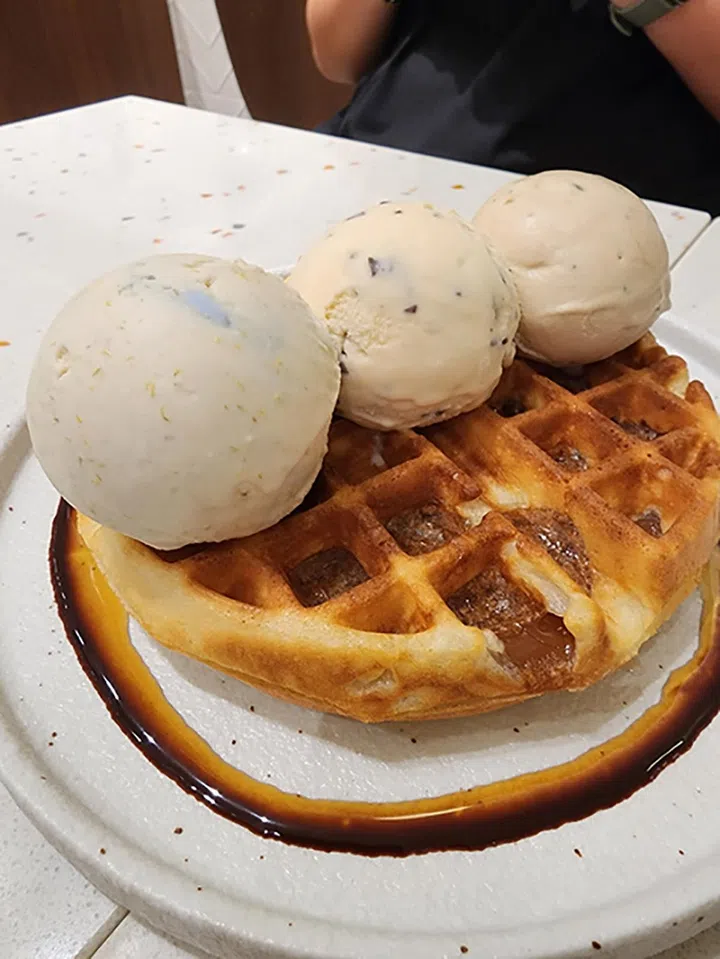 除了能润喉,枇杷膏也能拿来制作冰淇凌?!枇杷膏加进冰淇凌里,竟然毫无违和感,甜甜的滋味让人忍不住一口接一口的吃。Ri Ri Cha还有传统的年糕waffle,就让这“古早味”搭配点亮你的下午茶时光吧。