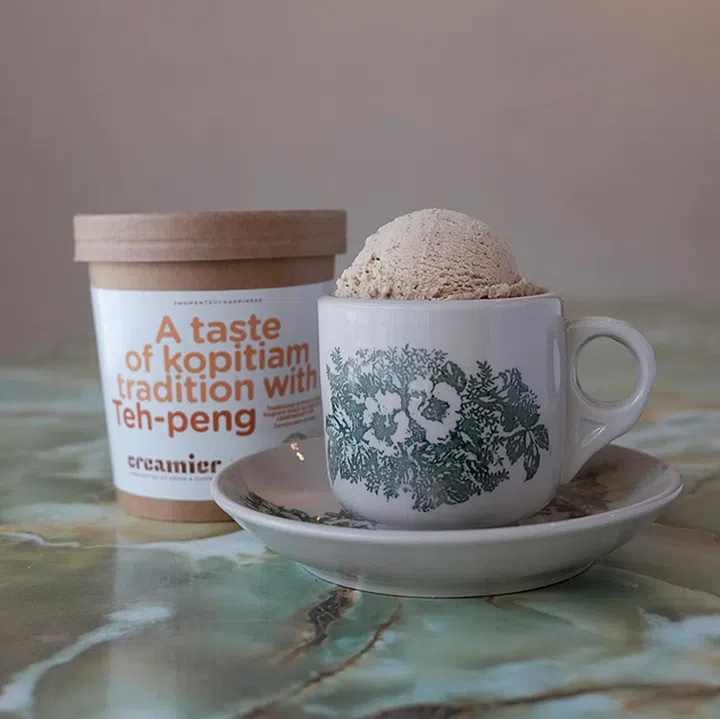 当你我都爱喝的南洋饮品,遇上冰淇凌会是怎么样的?本地“元老级”的手工冰淇凌品牌Creamier为你解答!为了庆祝国庆日,Creamier推出一系列的南洋风味冰淇凌,其中包括这款Teh Peng口味的ice-cream。由浓厚的红茶 + 炼奶制成,熟悉的teh味在嘴中爆开,能吃的Teh Peng确实别有一番风味。