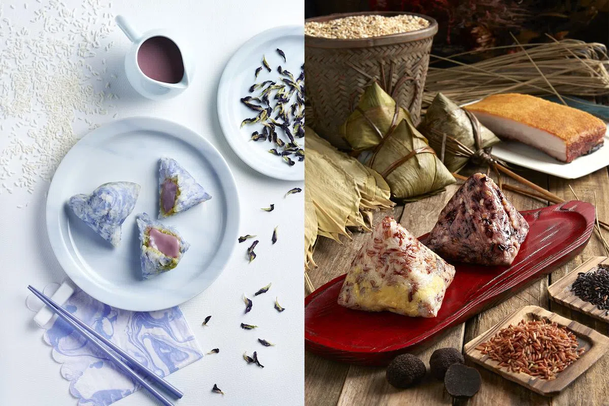 这款独特的肉粽(单价$9.80)使用了樱花虾,带着可爱的粉红色调,也为粽子添加咸香和香脆口感。有别于传统的糯米粽,改以糙米制作,更为健康的选择。其它馅料包括花腩肉、猪肉、莲子、板栗、咸蛋黄和绿豆。独爱黑松露?别错过今年特别推出的黑松露烧味五谷粽(单价$12.80)。食材使用了黑糯米、五谷杂粮和糯米,加上烧鸭肉、烧肉、花腩肉、猪肉、板栗、咸蛋黄和虾米。小编品尝后,可以大胆地说它是我们的美味名单第一名哦!口感略带嚼劲,让人想起住家手作粽子的熟悉美味,黑松露和松露油所带来的撩人香气,让人欲罢不能。即日至6月5日出售(存货售完为止)。