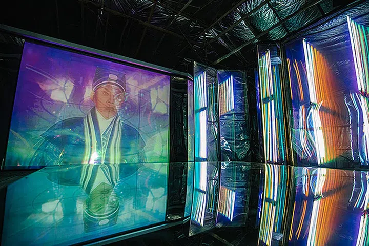 投影结合上世纪粤剧电影片段,与太空人登月及其他星球探索的录像相互交叠