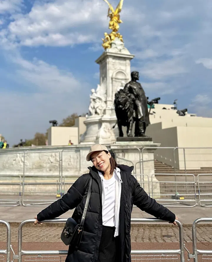 在老公视角下的林慧玲,沐浴爱河,笑容和阳光一样灿烂,她也留言写道:“第一次来伦敦就碰上英王加冕典礼。”