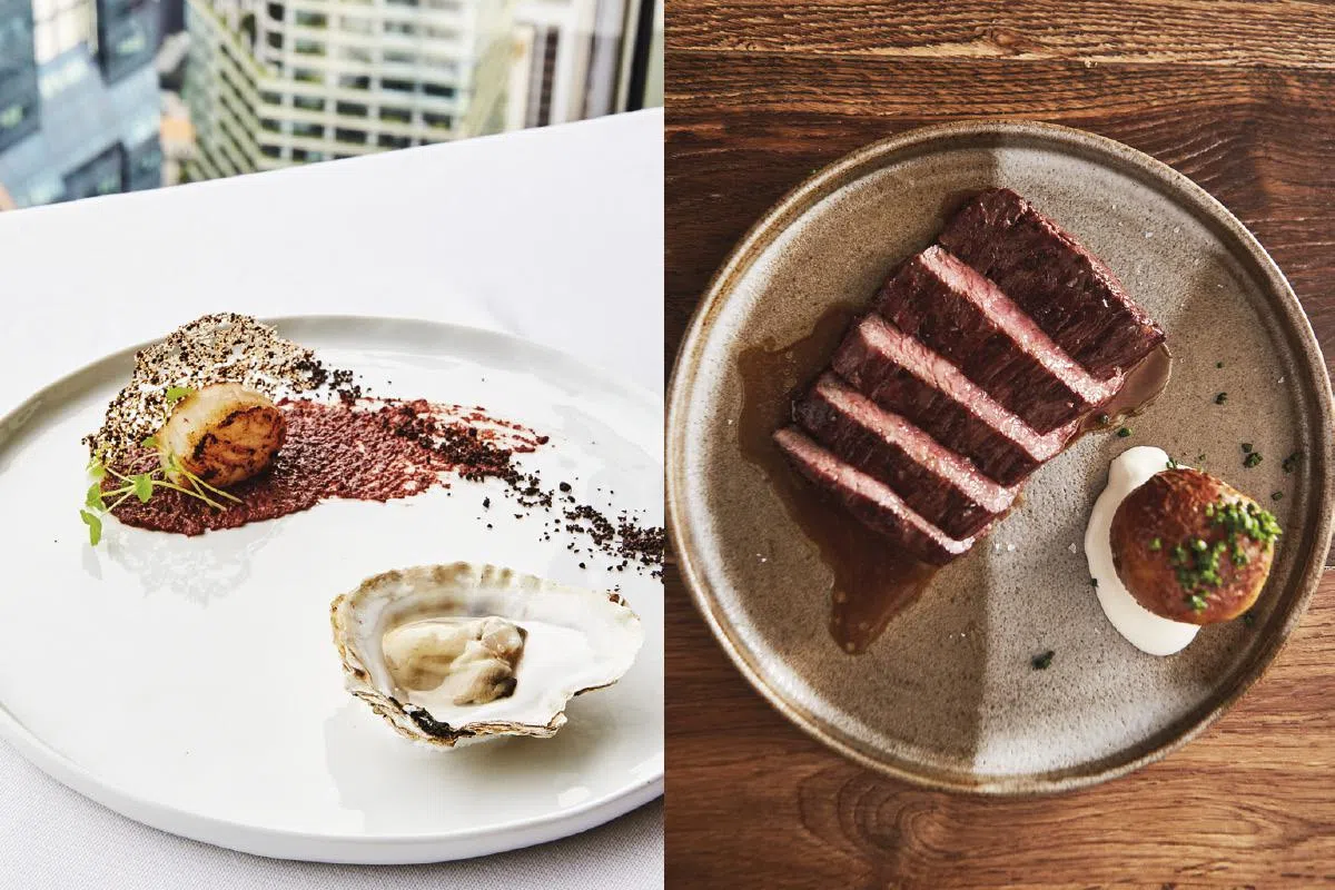推荐前菜Seared Hokkaido Scallop和主食A Flight of Three Cuts of Tajima Wagyu